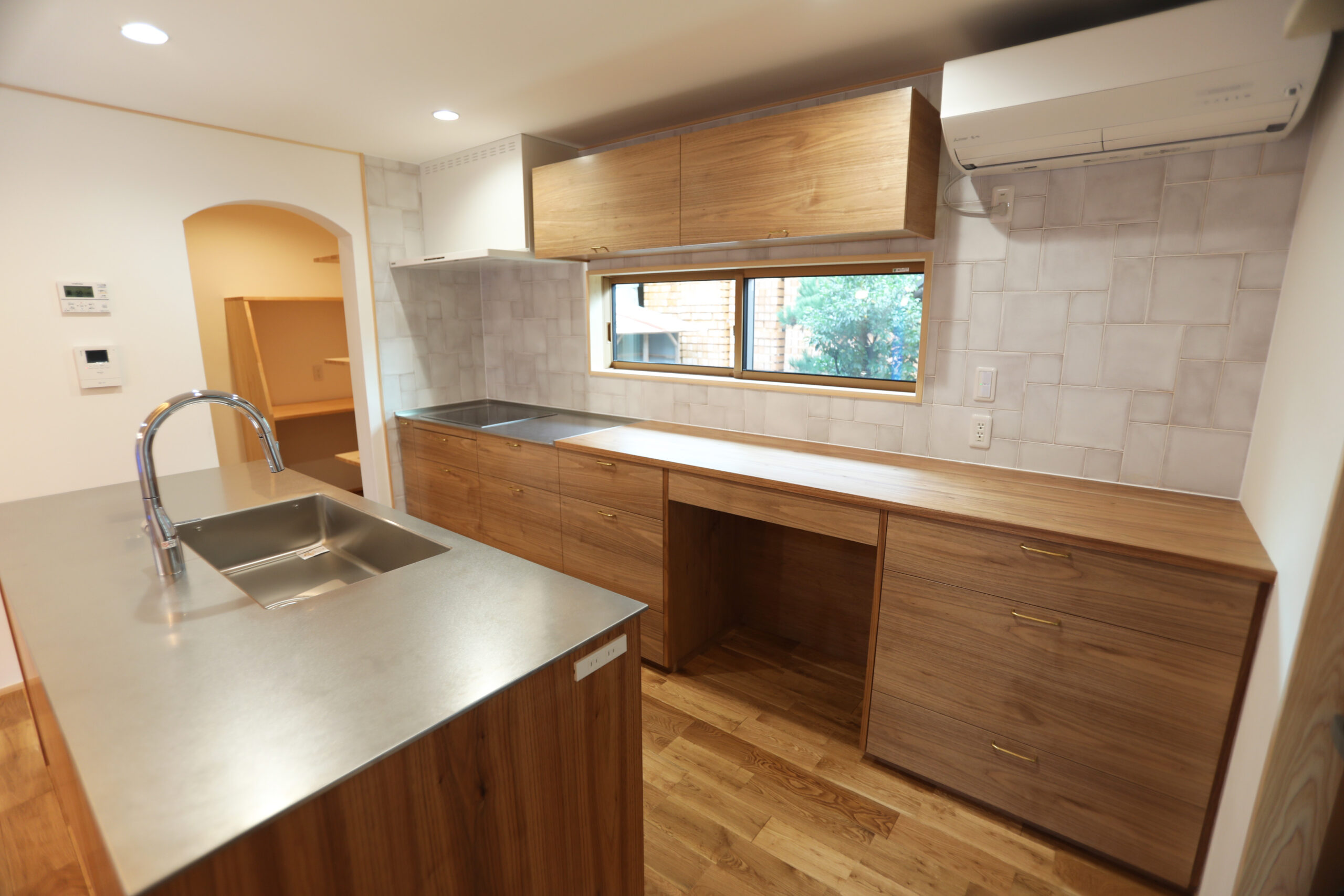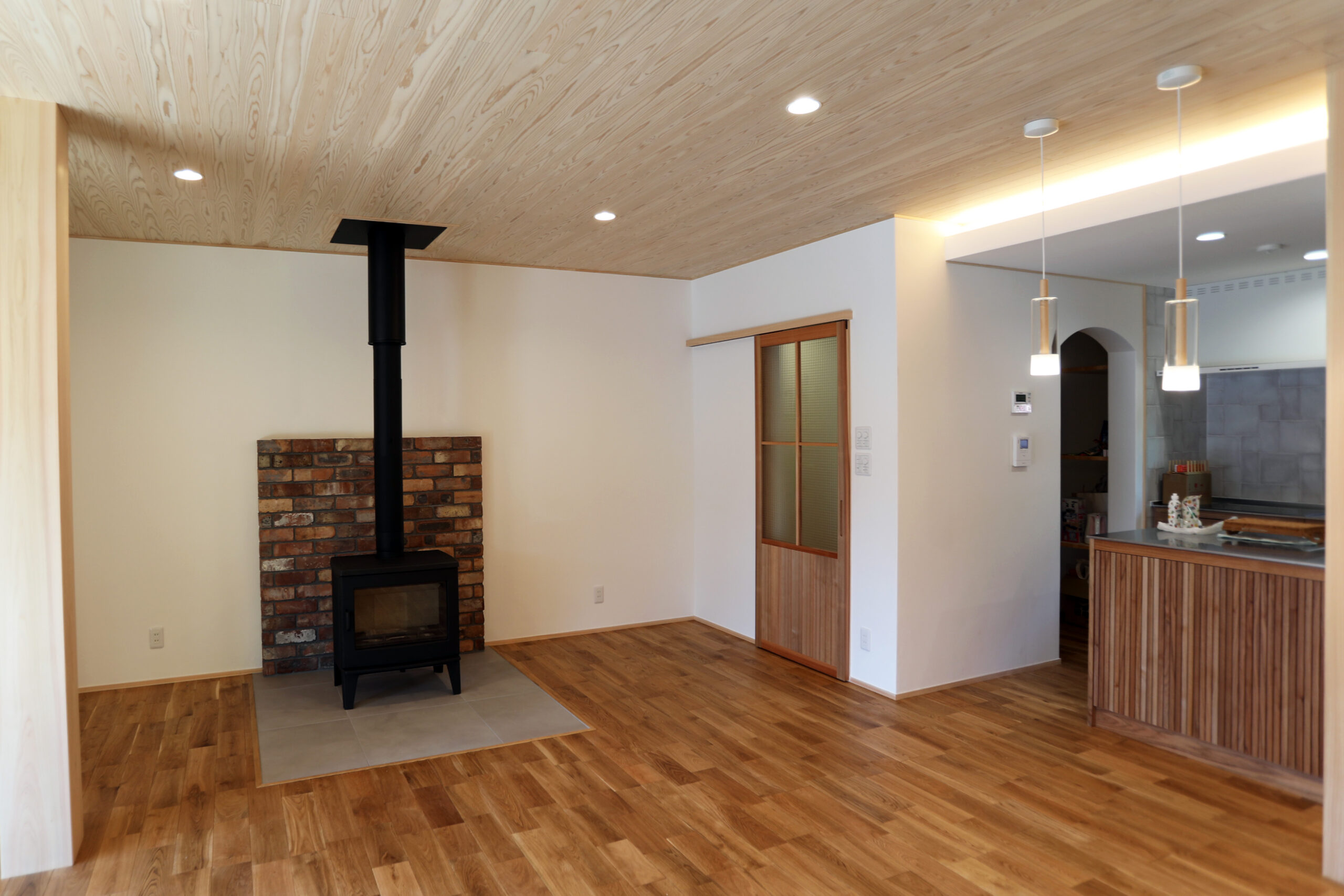 薪ストーブのあるリビング、オーダメイドのキッチン、ふんだんに自然素材を使ったこだわりのお家です
